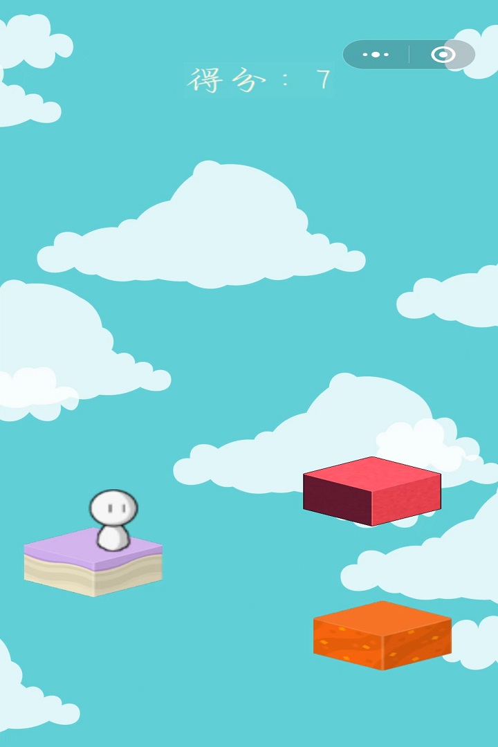 、从一个方块跳到另一个方块,晴天娃娃小人的设计活泼可爱